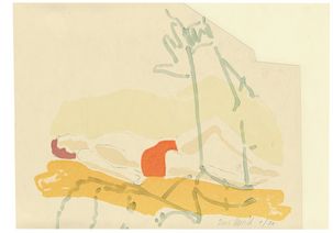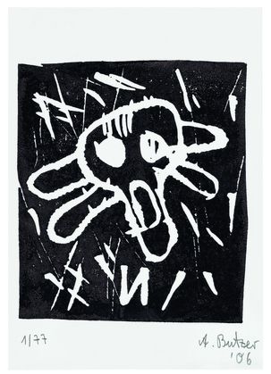In his work Mental-Maps, Franz Ackermann combines individual space and time experiences. These serve as a starting point for his large-format paintings such as Untitled (Evasion XIII – 5 Stars Tropical) (1977). In his work Princess (2005) Tal R uses his canvas almost like a workbench by layering stratum upon stratum of visual worlds made of different materials. Thomas Scheibitz unites painting, sculpture, collage and photography in his works. He actively uses traditional subjects like still lifes, portraits and landscapes in order to question their relevance. From creating photographic still lifes, Jörg Sasse moved to computer-generated visual worlds. With works such as 8246 (2000) he represents a generation of younger artists who have exchanged the paintbrush for the computer mouse. Dutch artist Mathilde ter Heijne appears in southern Germany for the first time with four video- and sound-installations in BASE 103 at Sammlung Goetz. In her film The invisible Hero (2005) she uses computer manipulation to blur the boundaries of space and subject.