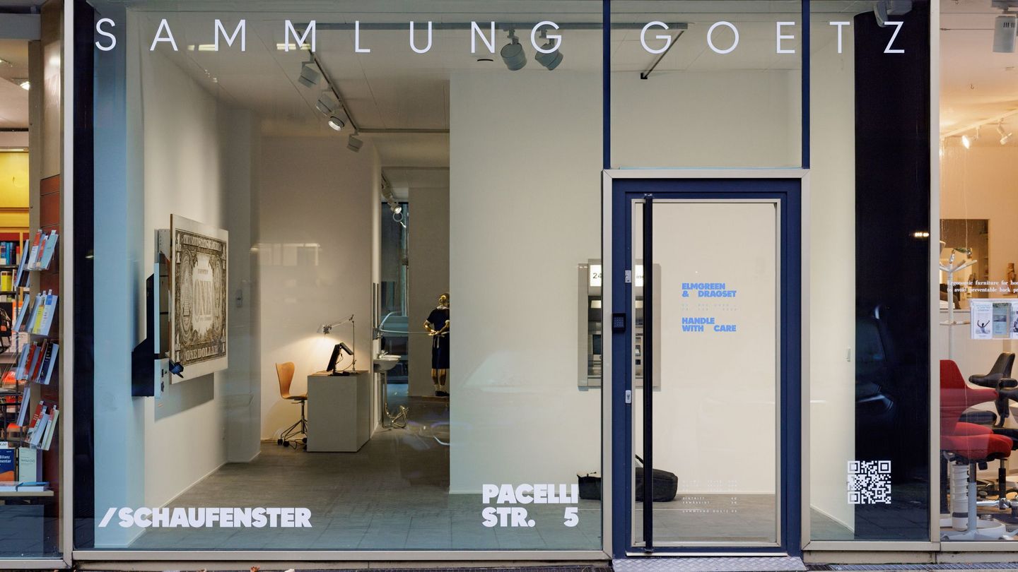 This new centrally located space is intended to serve as a showcase, ensuring that the Sammlung Goetz remains visible while its main venue in Oberföhring is closed. The name "Schaufenster” (display window, showcase) refers both to the location of the new exhibition space and to the curatorial concept developed for it.